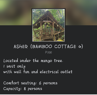 Size: 5 persons or more P300 per tent