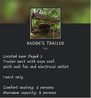 Rent: P300 whole day ( Exclusive Use- Unlimited Persons )